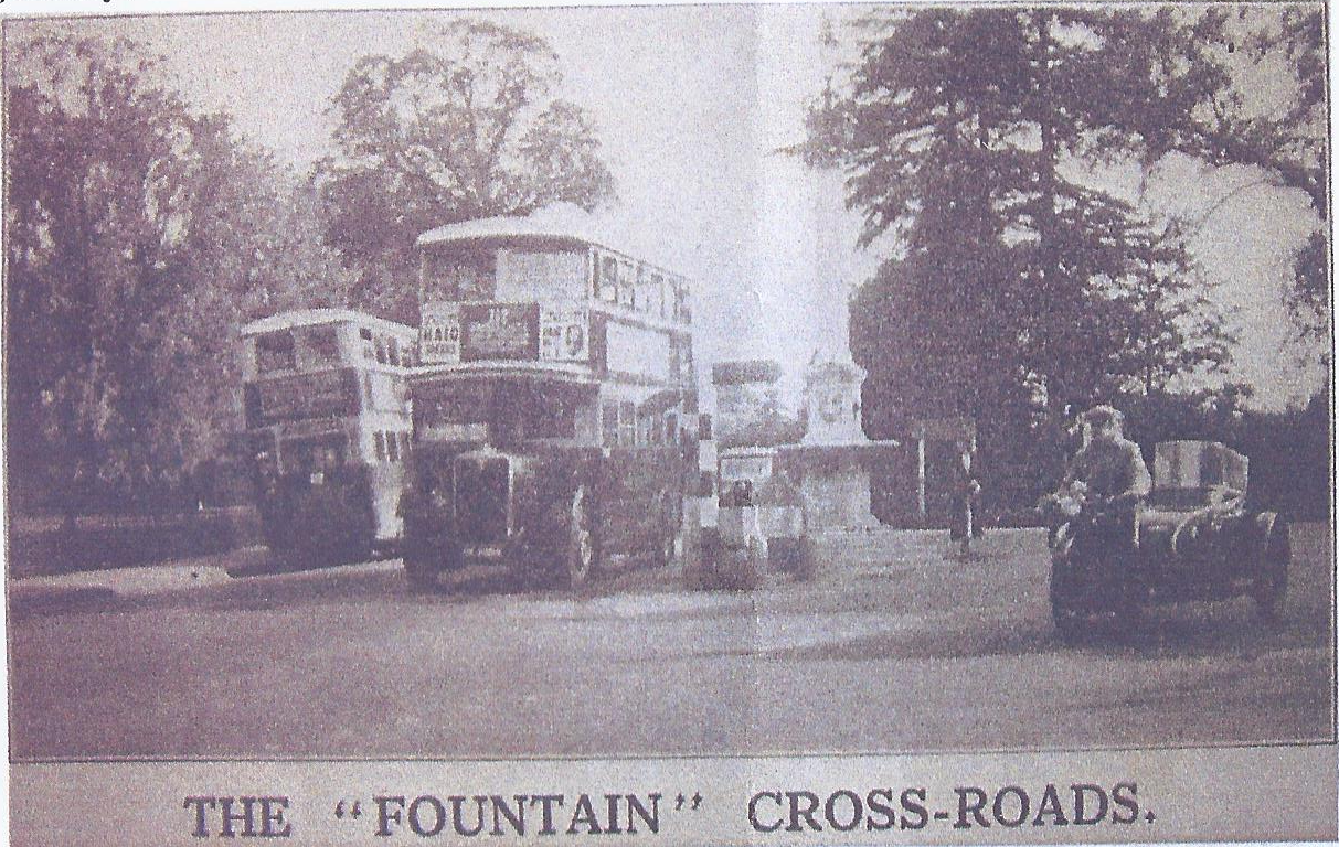 Opinion was divided as to whether this would improve matters or make traffic conditions more difficult. In the edition of the paper for the 10th of June 1938 details were given of a crash at the Fountain crossroads involving a charabanc returning from the Aldershot Tattoo and the Windsor Fire Brigade tender, which demolished the horse trough. Two Firemen were taken to hospital and the thirty children in the charabanc although shaken, were able to continue their journey.